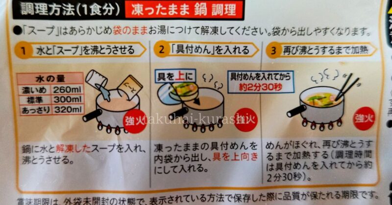 - 冷凍のまま具材と麺を入れる