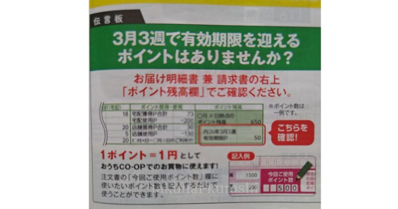 おうちコープのポイントは、200円で1ポイント(還元率0.5%)です。