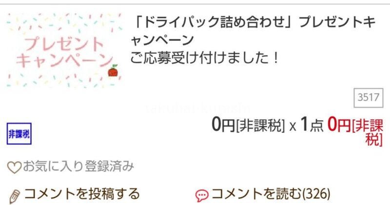 今回「ドライパック詰め合わせプレゼントキャンペーン」に応募して、見事あたりました!