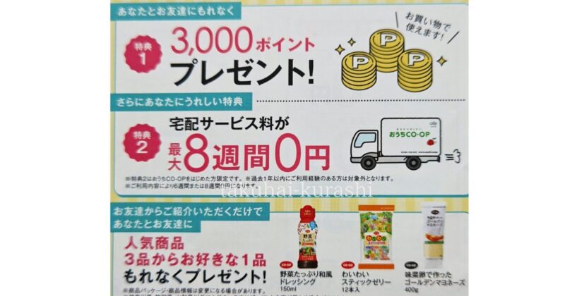 【2026年最新】おうちコープのお友達紹介キャンペーンはお得だけど注意点もあり